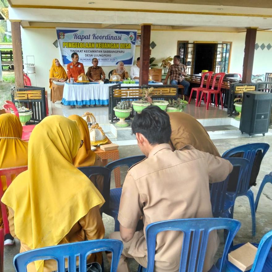 Rapat koordinasi ini dihadiri oleh jajaran perangkat kecamatan, para Kepala Desa se-Kecamatan Sabbangparu, Bendahara Desa, serta pendamping desa. Fokus utama pertemuan adalah sinkronisasi pelaporan keuangan semester pertama tahun anggaran 2026.