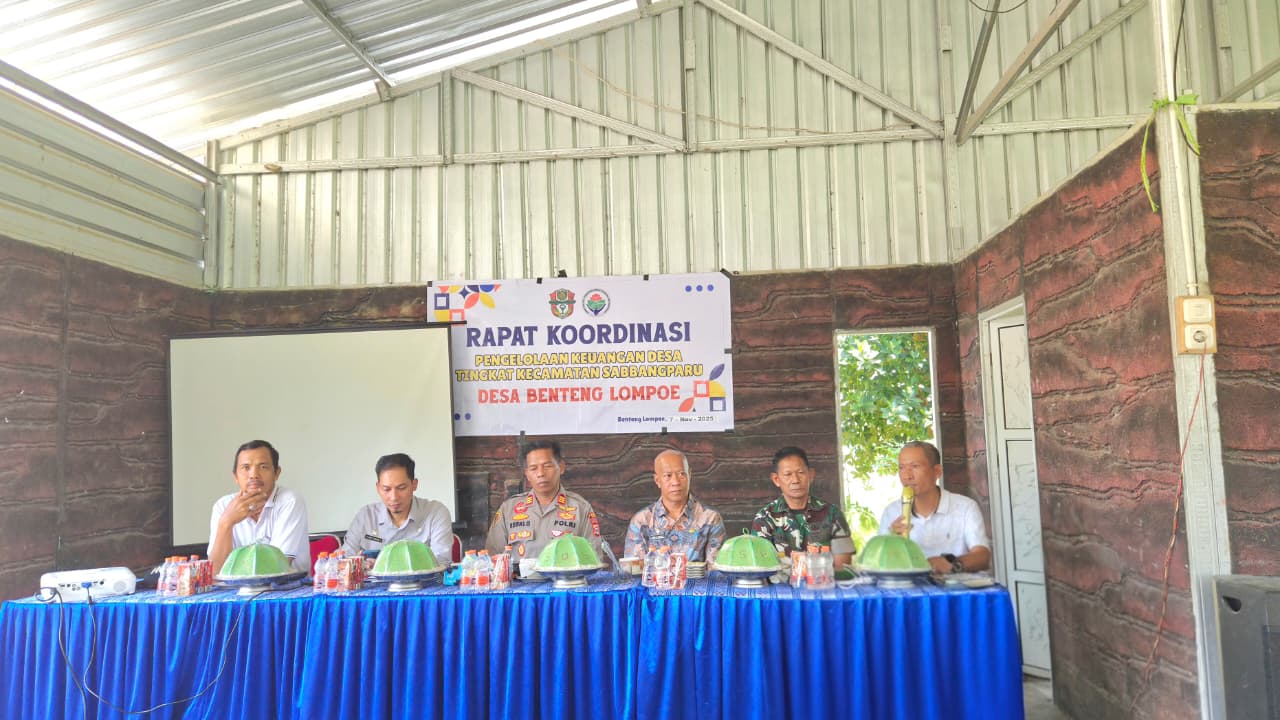 Benteng Lompoe (Wajo), 7 November 2025 – Dalam rangka memperkuat koordinasi dan sinergitas pelaksanaan program pembangunan desa, Pemerintah Desa Benteng Lompoe menggelar rapat koordinasi Tingkat Desa Se Kecamatan Sabbangparu di Kantor Desa Benteng Lompoe, Kecamatan Sabbangparu, pada Jumat, 7 November 2025.