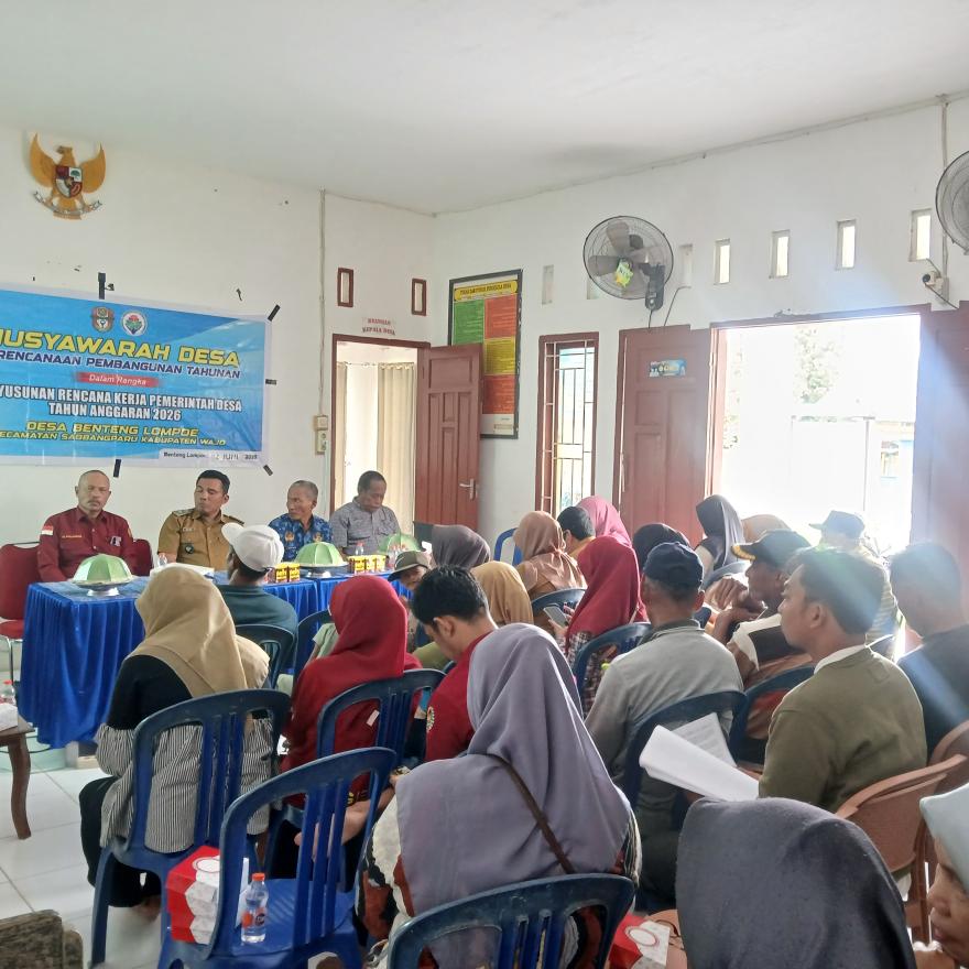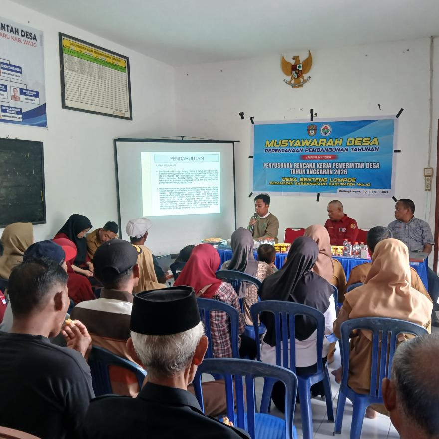 Benteng Lompoe – Pada Senin (02/06/2025) Pemerintah Desa Benteng Lompoe bersama BPD menggelar Musyawarah Desa (Musdes) I Perencanaan Pembangunan Tahunan dalam rangka Penyusunan Rencana Kerja Pemerintah Desa (RKPDesa) Tahun Anggaran 2026, pada Senin, 2 Juni 2025, bertempat di Aula Kantor Desa Benteng Lompoe, Kecamatan Sabbangparu, Kabupaten Wajo.